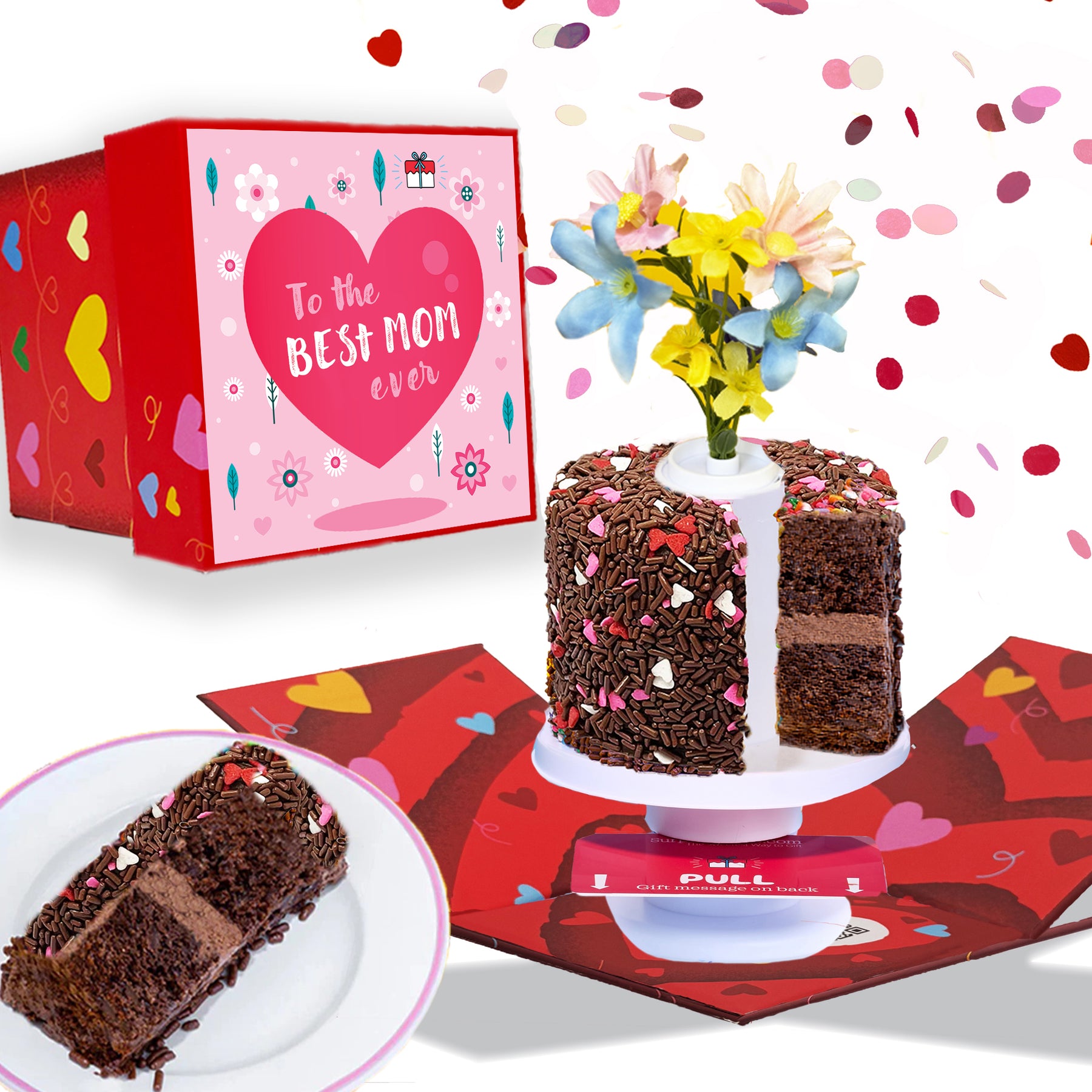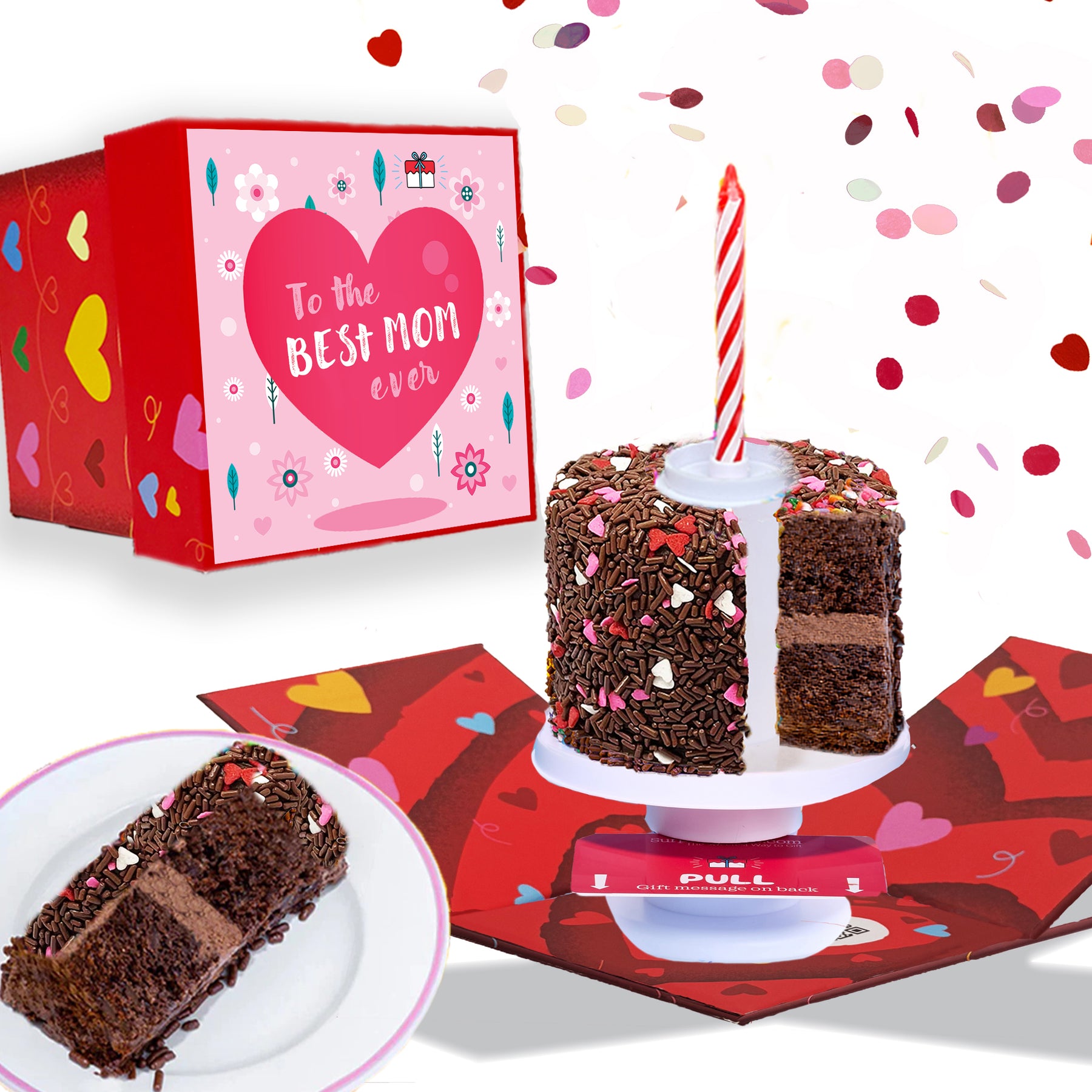 All Surprise Cakes include your choice of our delicious 4" cake, filled surprise gift pod, explosion gift box, and pull-card trigger with gift message on the back. Take your gift to the next level by adding an optional gift card from select retailers. Your gift arrives fully assembled and ready to pop on our patented mini Popping Cake Stand. And don’t worry, they won’t know it’s from you or us until their surprise POPS out!
